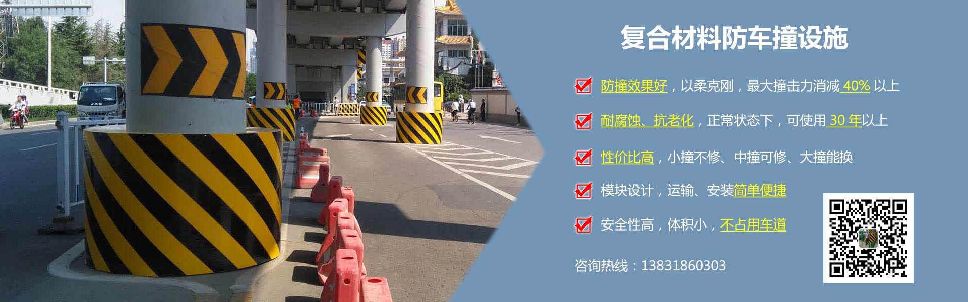高速公路橋墩防撞設施,又稱為高速公路橋墩附著式柔性防車撞裝置,是一種附著到高速公路中間或兩側(cè)橋墩四周的柔性復合材料橋梁橋墩防撞設施。這種防撞設施為復合材料單元模塊組裝式,根據(jù)車輛通行情況(車輛等級、限速...